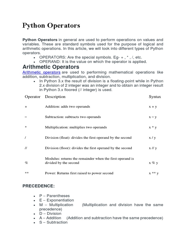 Introduction To Operators in Python | PDF | Computer Programming ...