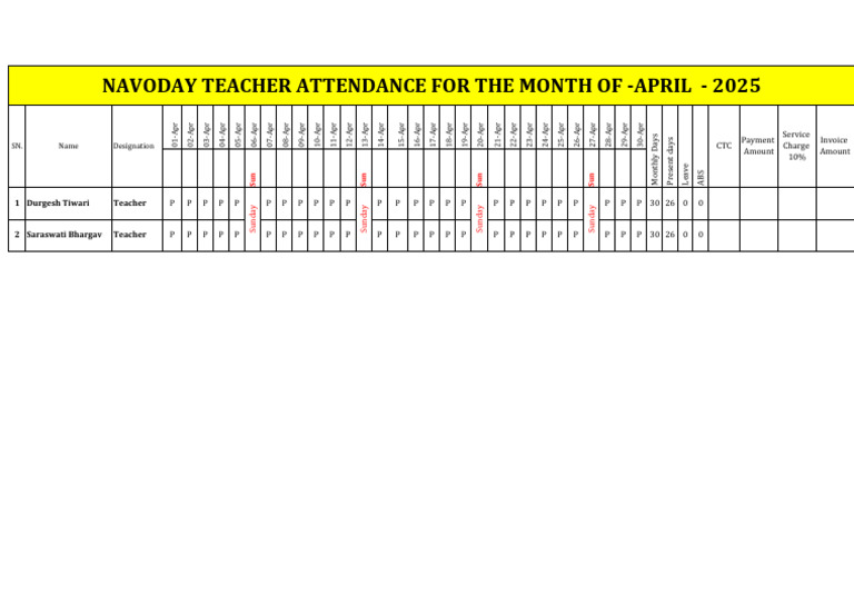 Navodaya Teachers Attendance | PDF