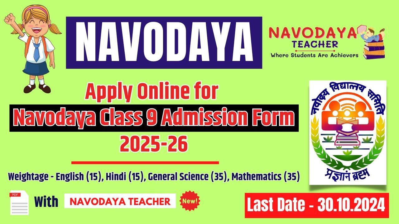 Apply Online for Navodaya Class 9 Admission Form 2025-26
