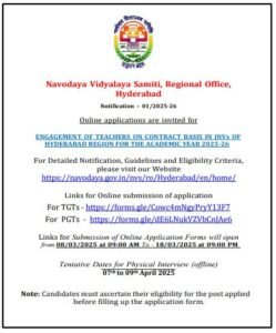 Navodaya Contract Teacher Recruitment 2025-26 Hyderabad Region ...