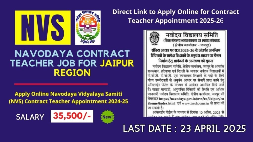 Navodaya Jaipur Region Contract Teacher Online Link 2025-26