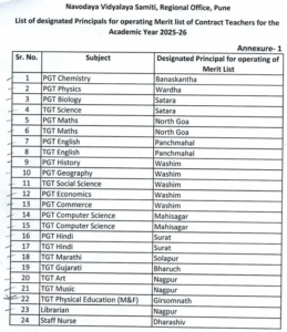 Navodaya Contract Teachers 2025-26 Updates - Merit List
