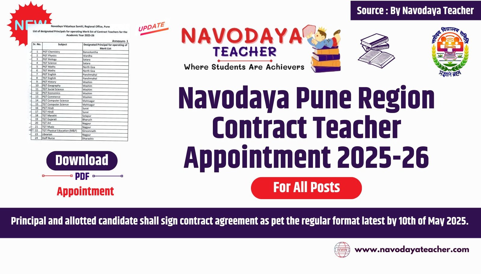 Navodaya Pune Region Contract Teacher Appointment 2025-26