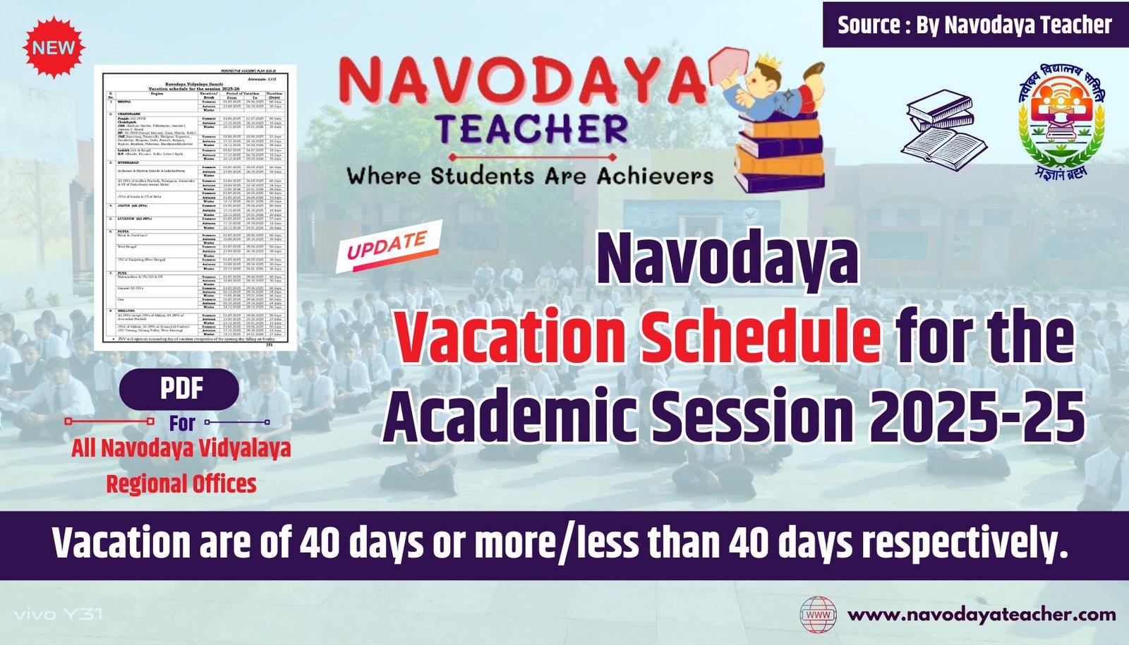 Navodaya Vacation Schedule for the Session 2025-26