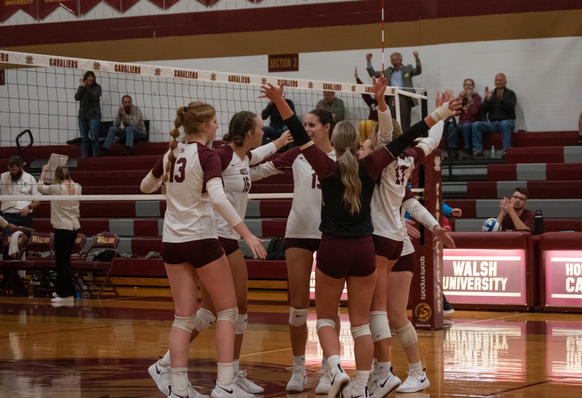 COMEBACK CAVS: WOMEN'S VOLLEYBALL BEATS MALONE 3-2 - Walsh University
