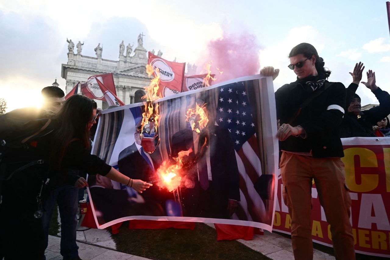 Protesters burn photos of Trump, Meloni - The Korea Herald
