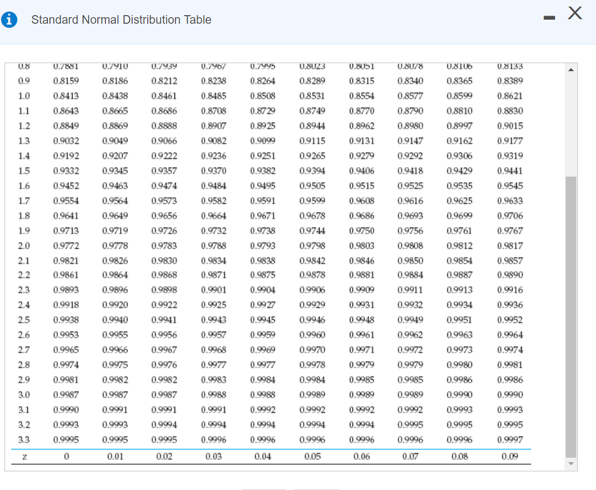Solved - X i Standard Normal Distribution Table Z 0 0.01 | Chegg.com