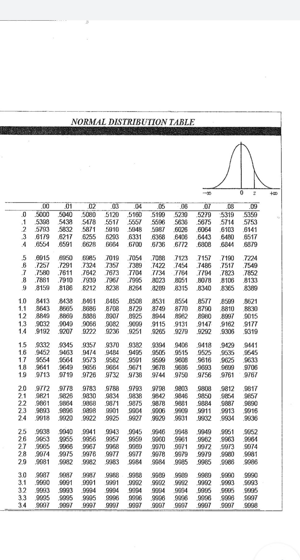 NORMAL DISTRIBUTION TABLE 0 Z +00 .0 „1 2 3 4 .00 | Chegg.com