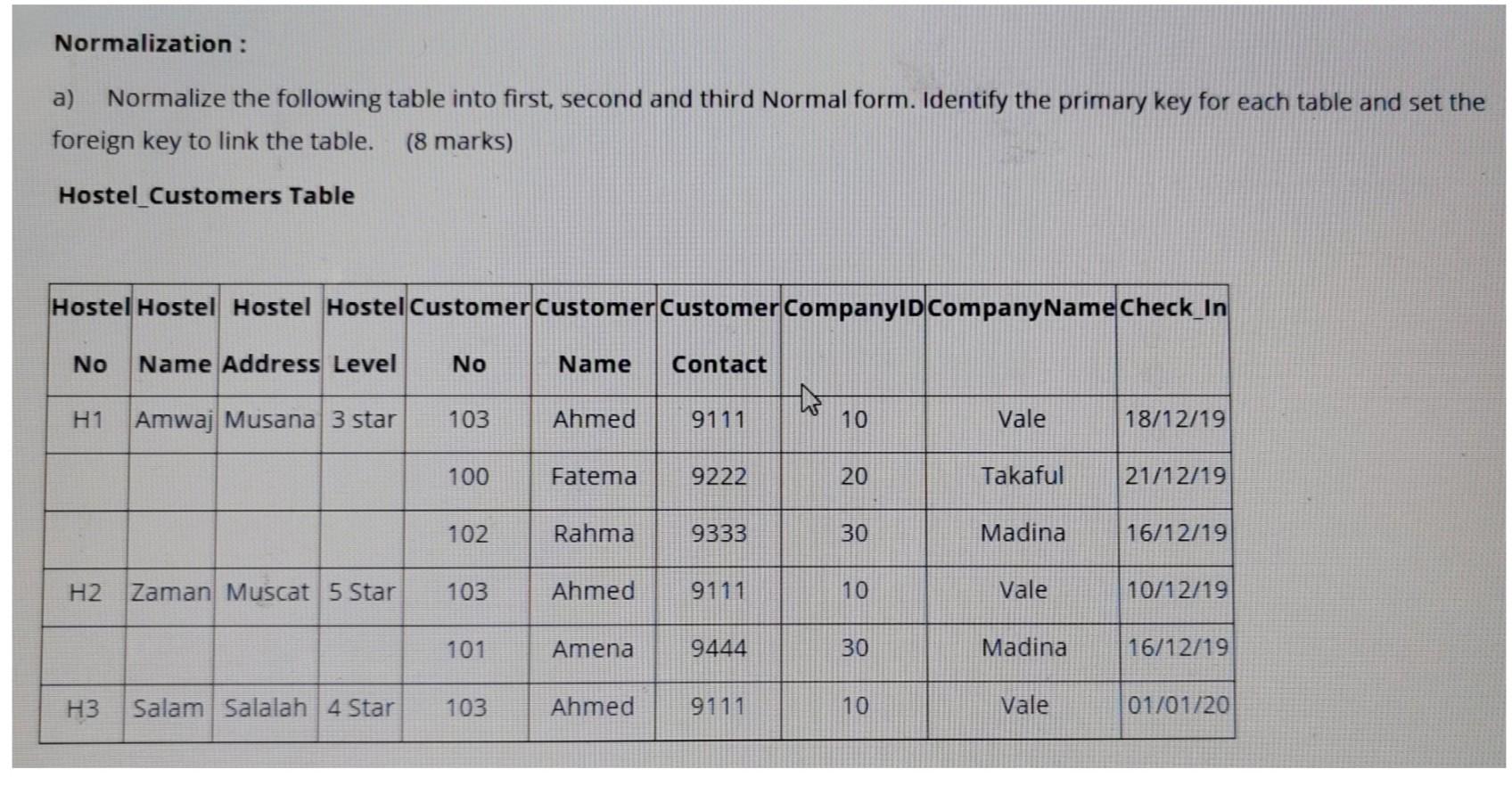 Solved 3. Please normalize this table up to the 3rd normal | Chegg.com