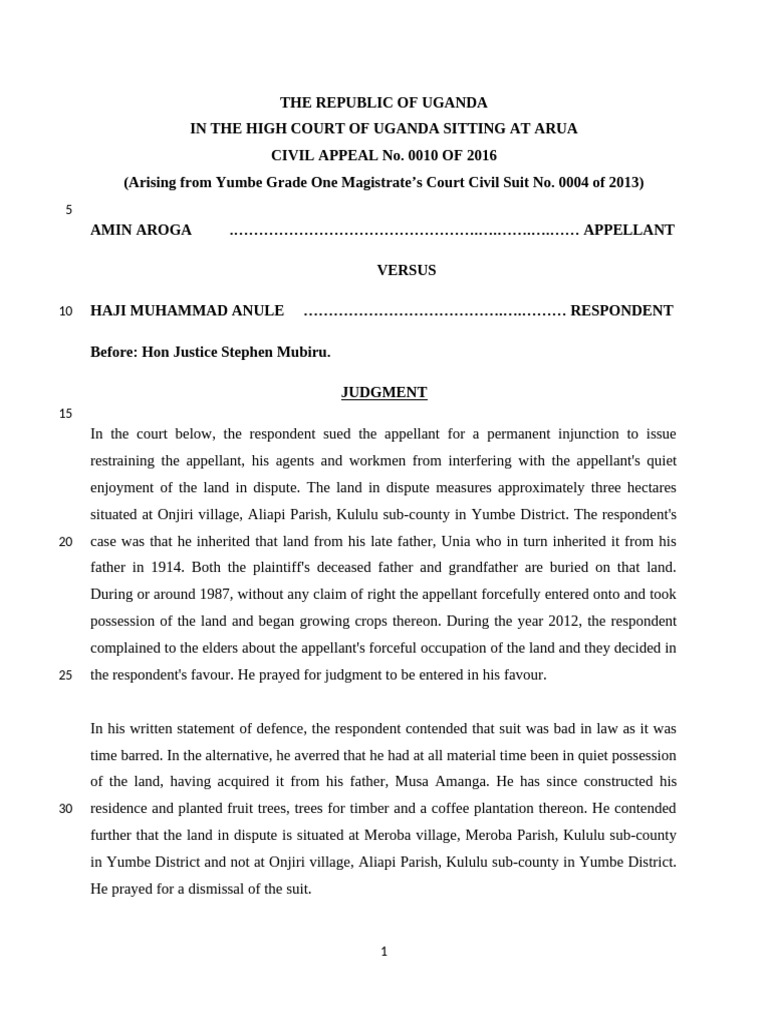 Aroga v Haji Muhammad Anule (Civil Appeal No 0010 of 2016) 2018 UGHCLD ...