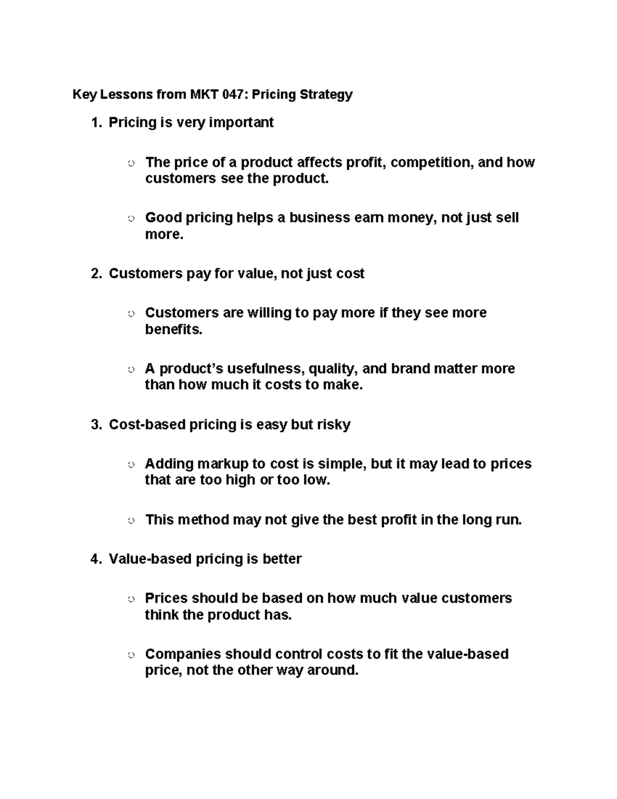 MKT 047: Key Insights and Strategies for Pricing Quiz Review - Studocu