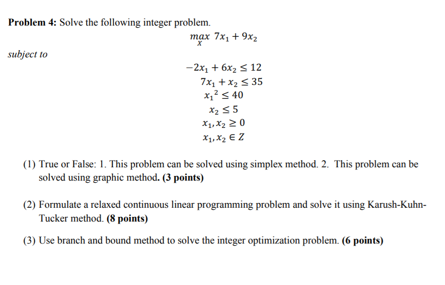 Solved Problem 4: Solve the following integer problem. max | Chegg.com