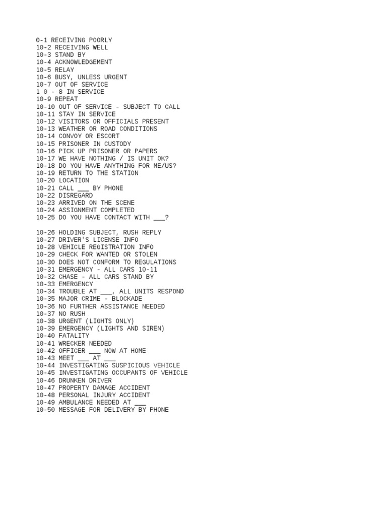 10 Codes - 10 CODES 10-0 Caution 10-1 Unable to copy, change location ...