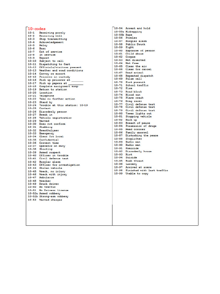 Basic Ten Codes at Douglas Jacobson blog