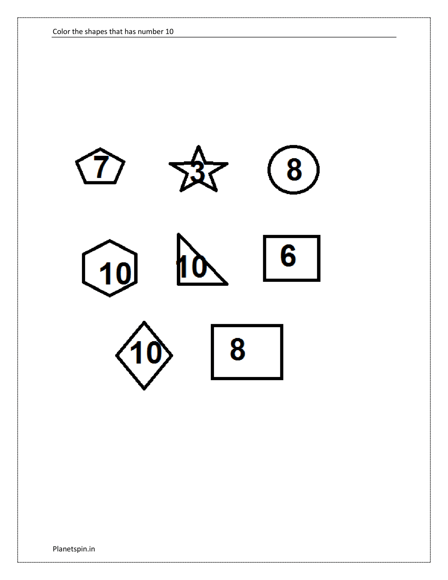 Tracing number 10 worksheets | Planetspin.in