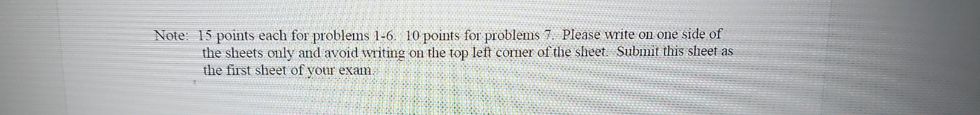 Note: 15 points each for problems 1-6. 10 points for | Chegg.com