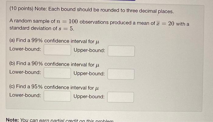 Solved (10 points) Note: Each bound should be rounded to | Chegg.com
