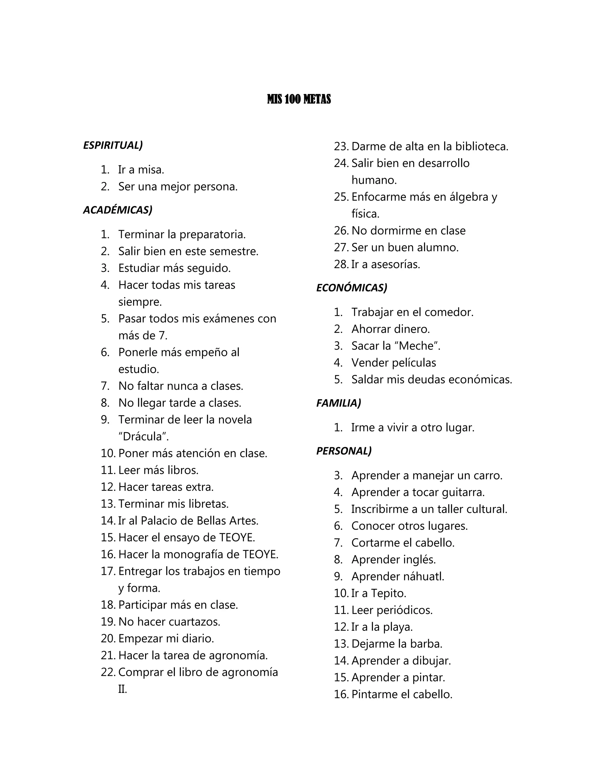 100 Metas para Tu Vida Número Metas Temporalidad | PDF