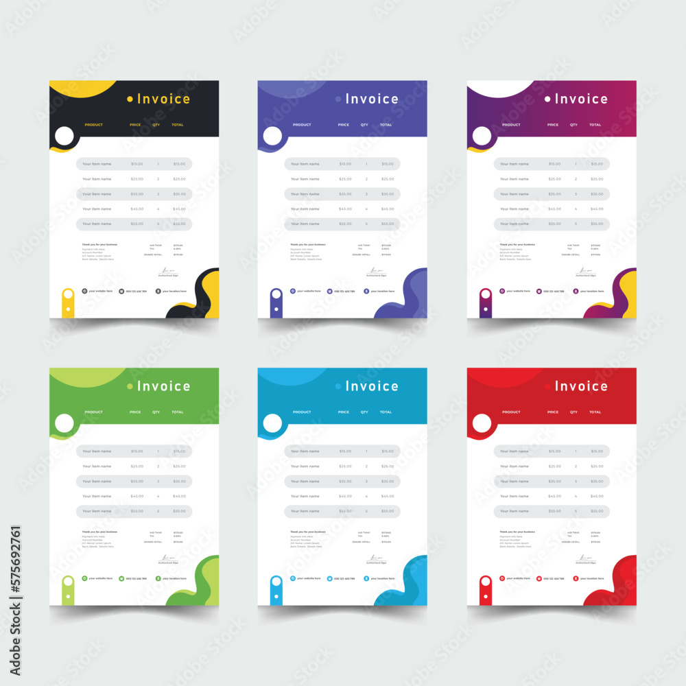 Invoice template vector collection with abstract shapes. Colorful ...