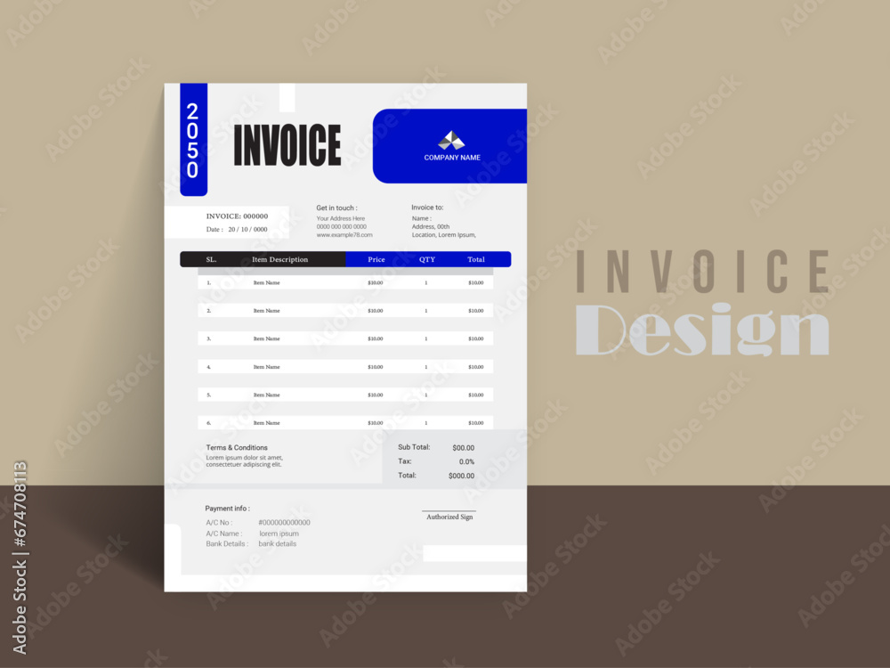 Invoice Template Design, Corporate Invoice Design Template, Vector ...