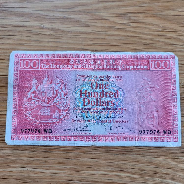 This 100-dollar note from the Hong Kong & Shanghai Banking Corporation ...
