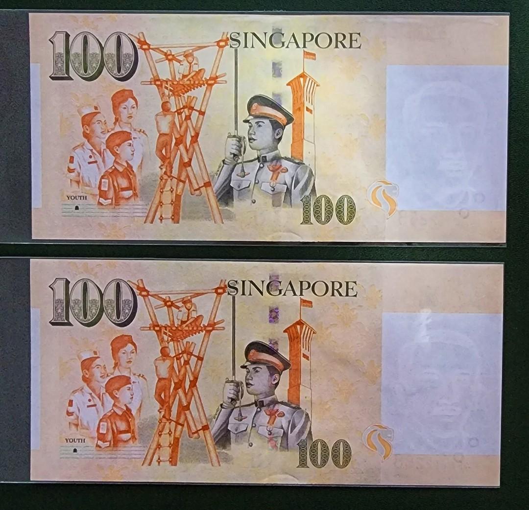 SINGAPORE - 100 Dollars Paper Note- Youth - Consecutive Series Number ...