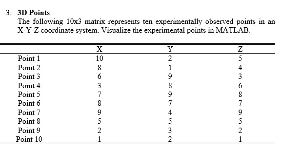 Solved 3. 3D Points The following 10x3 matrix represents ten | Chegg.com