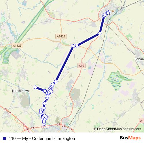 110 Route: Stops, Schedules & Maps - Ely - Cottenham - Impington