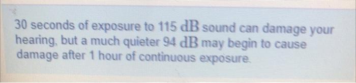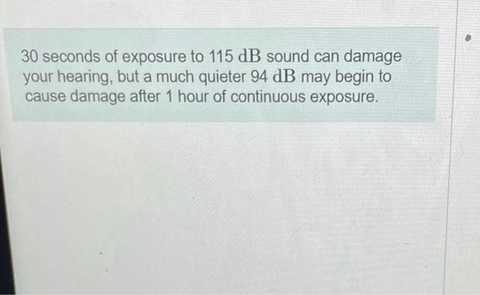 Solved 30 seconds of exposure to 115 dB sound can damage | Chegg.com