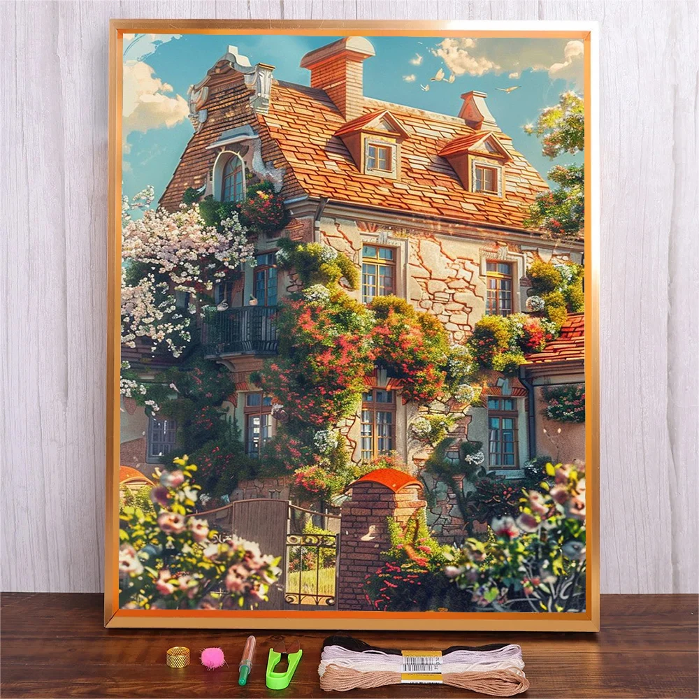 Scenery Plant House DIY 11CT Cotton Thread Printed Canvas Cross Stitch ...