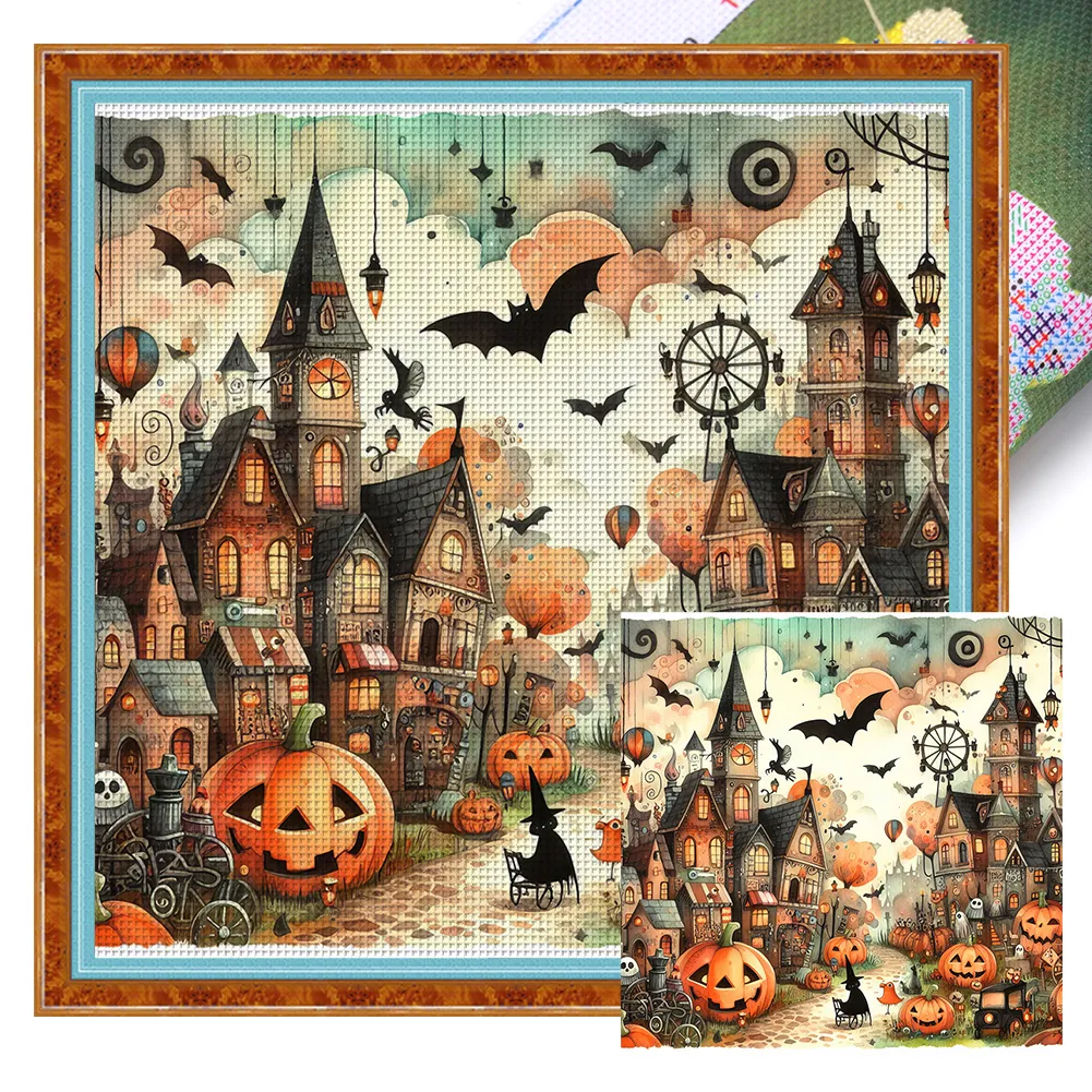 Full Embroidery Eco-cotton Thread 11CT Printed Halloween Cross Stitch ...