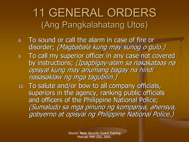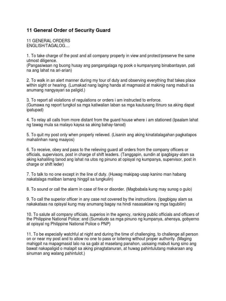 11 General Orders or (11GO's) ng mga Security Guard English & Tagalog ...
