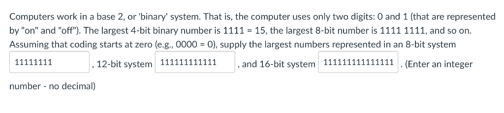 Solved Computers work in a base 2, or 'binary' system. That | Chegg.com