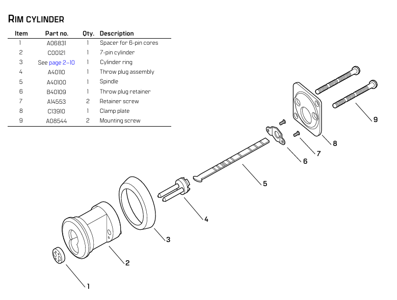 BEST 12E72-S2RP 1-11/32" Rim Cylinder, SFIC Housing, 7-pin w/ Standard ...