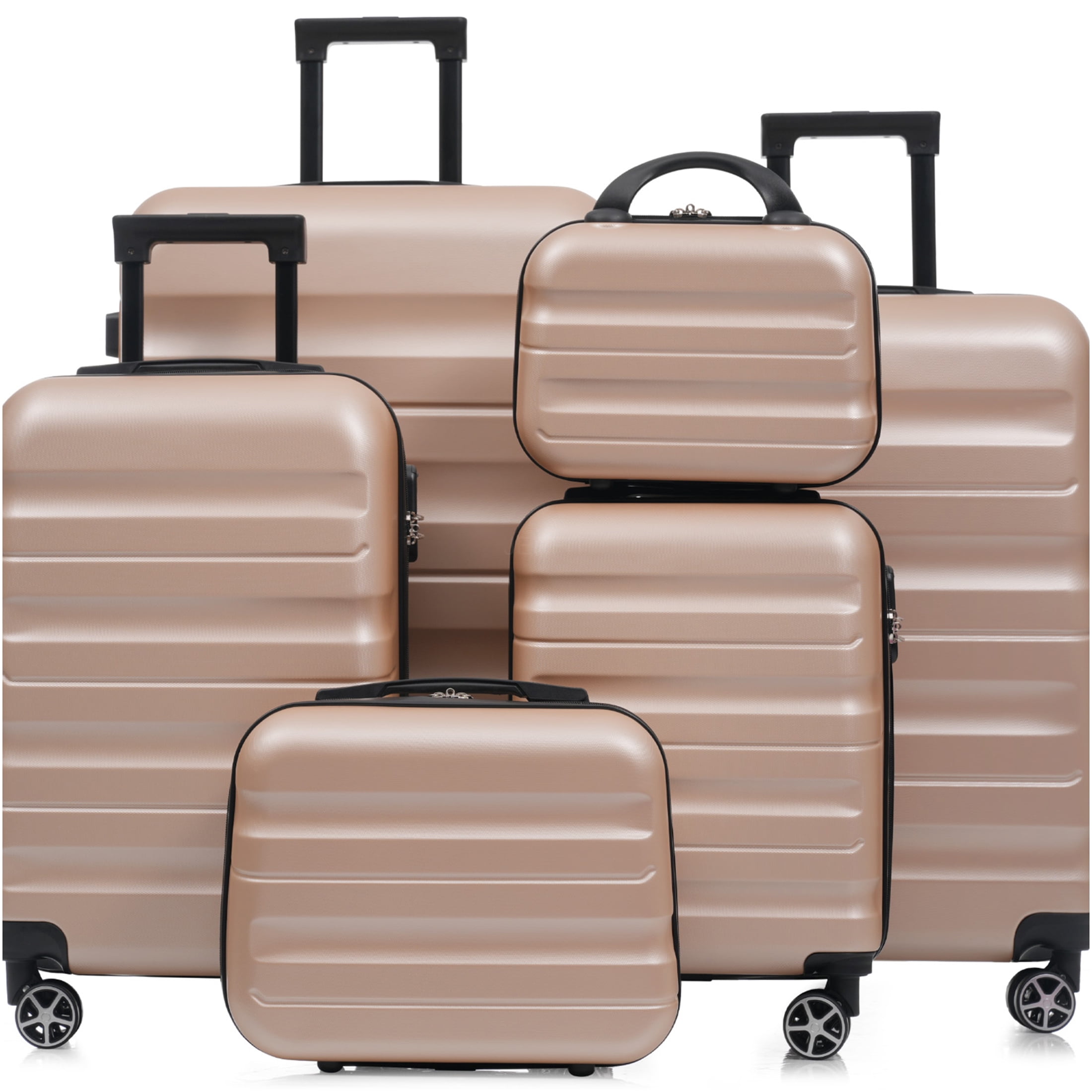 JERFIT 6-Piece Champagne ABS Hardshell Luggage Set with Spinner Wheels ...