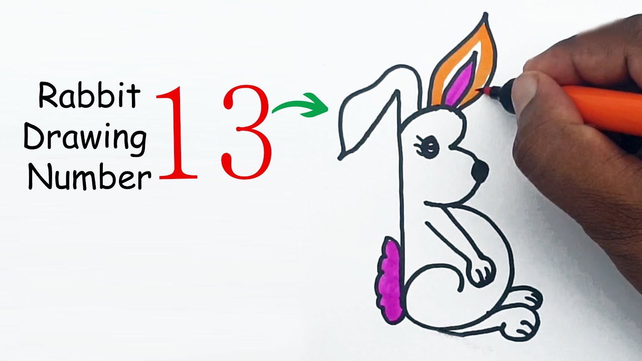 How to turn the Number '13' into a Rabbit drawing | Easy Rabbit Drawing ...