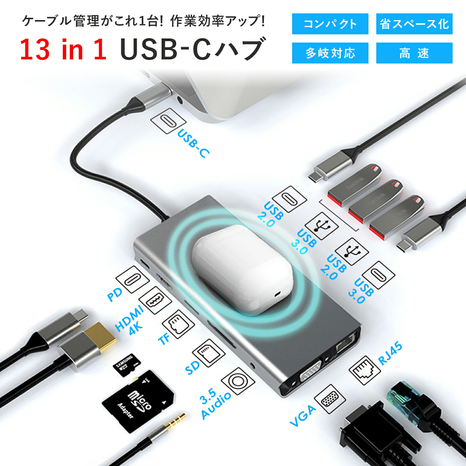 【楽天市場】【選べるレビュー特典】ワイヤレス充電 USB ハブ 13in1 Type-C HDMI 4K USB3.0 PD SDカード ...