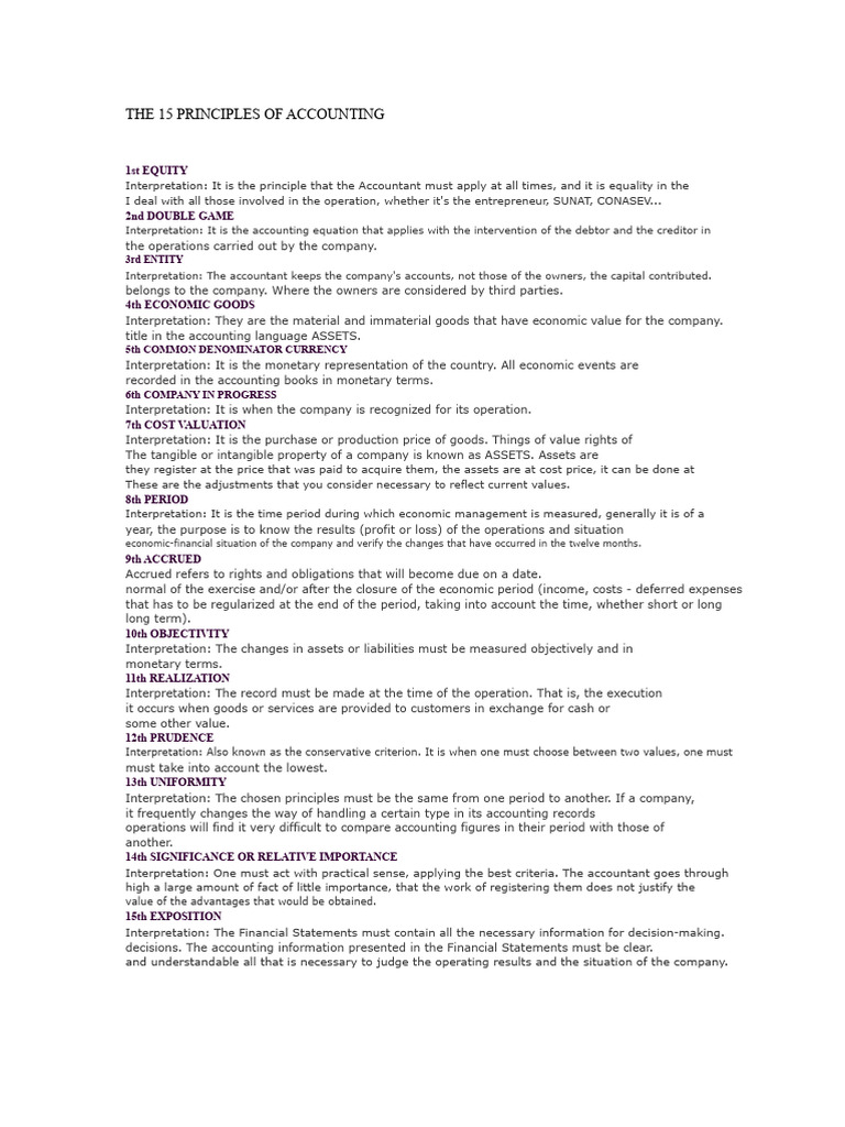 The 15 Principles of Accounting | PDF | Fair Value | International ...