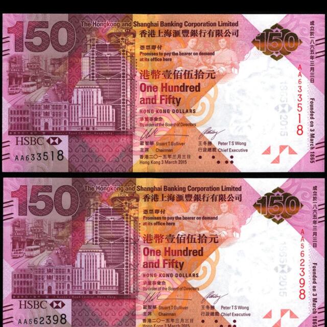 Hong Kong 2015 HSBC BANK 150th Commemorative Banknote $150 UNC 滙豐銀行 | eBay