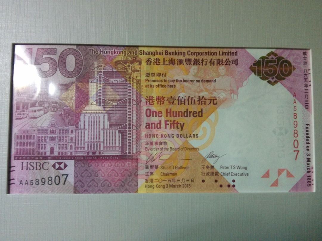 匯豐150周年紀念鈔票HSBC 150 anniversary commemorative banknote, 興趣及遊戲, 收藏品及紀念品 ...