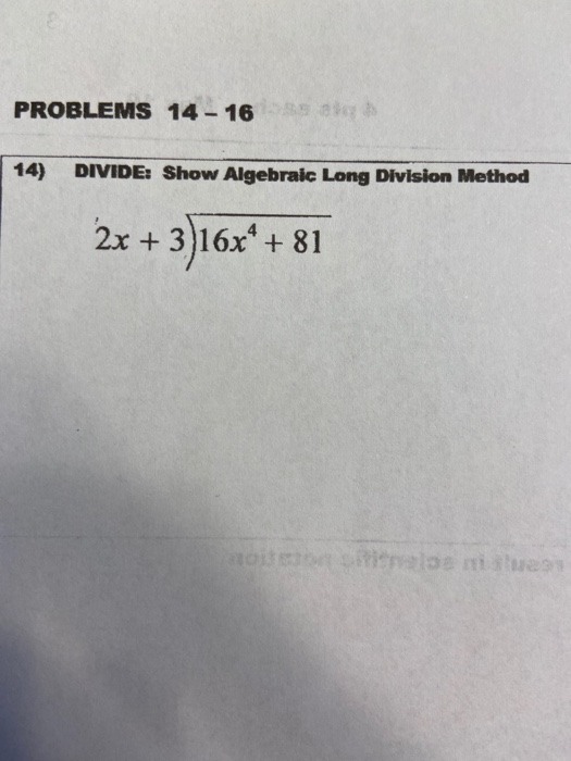 Solved PROBLEMS 14 - 16 14) DIVIDE: Show Algebraic Long | Chegg.com