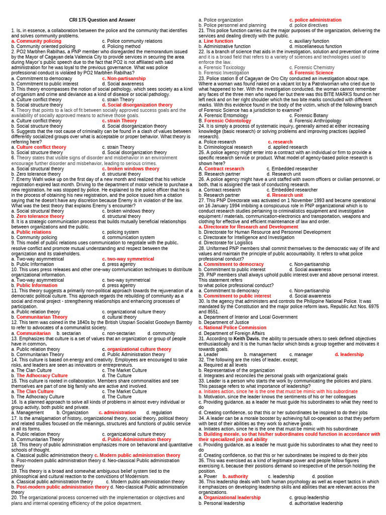 CRI 175 Question and Answer | PDF | Leadership | Motivation