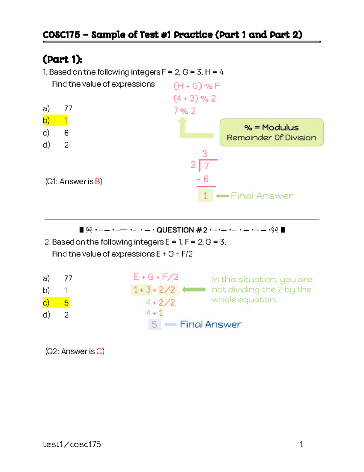 COSC175 Sample Test #1 Practice (Part 1 & 2) Answers & Explanations ...