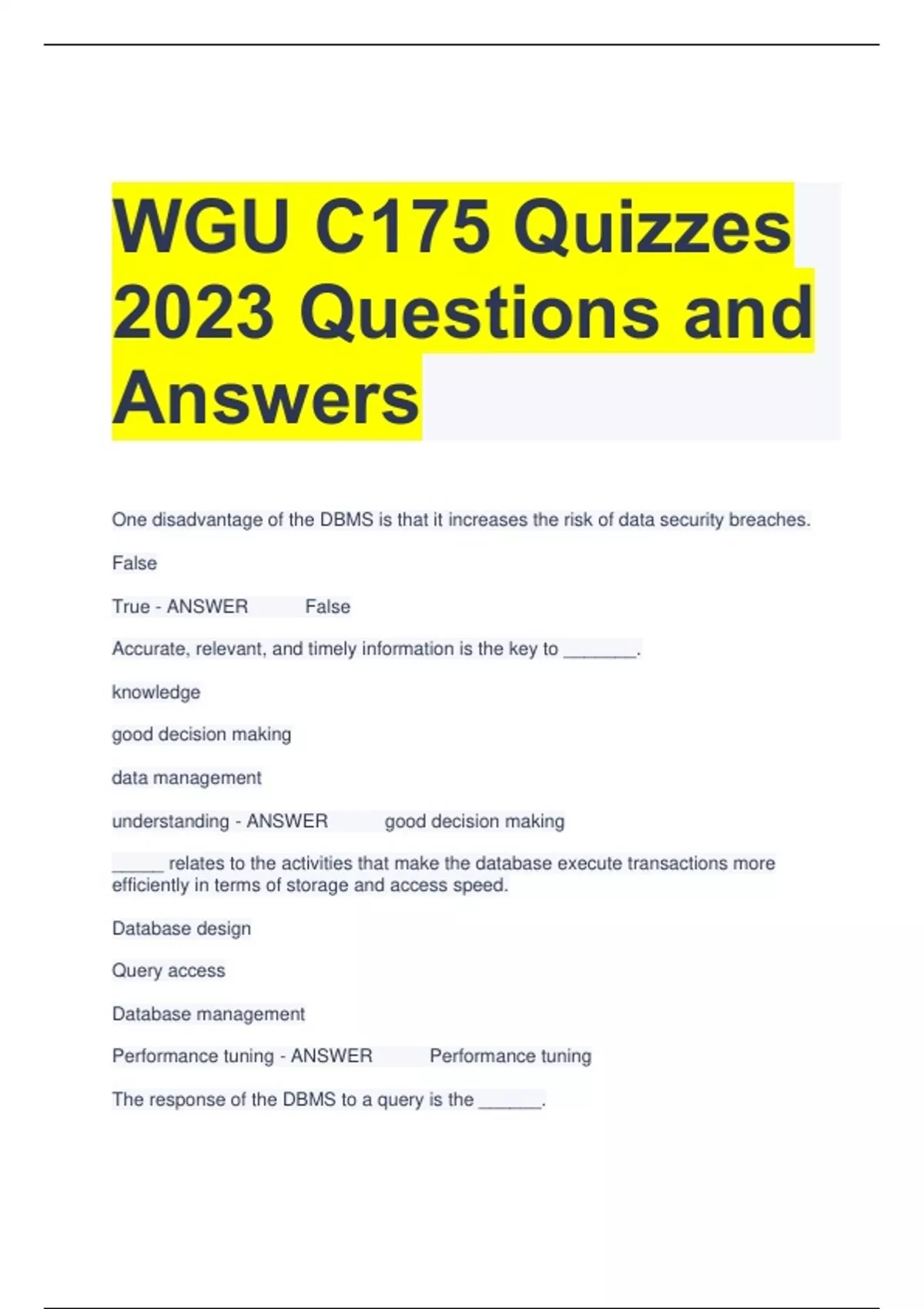 WGU C175 Quizzes 2023 Questions and Answers - WGU C175 - Stuvia US