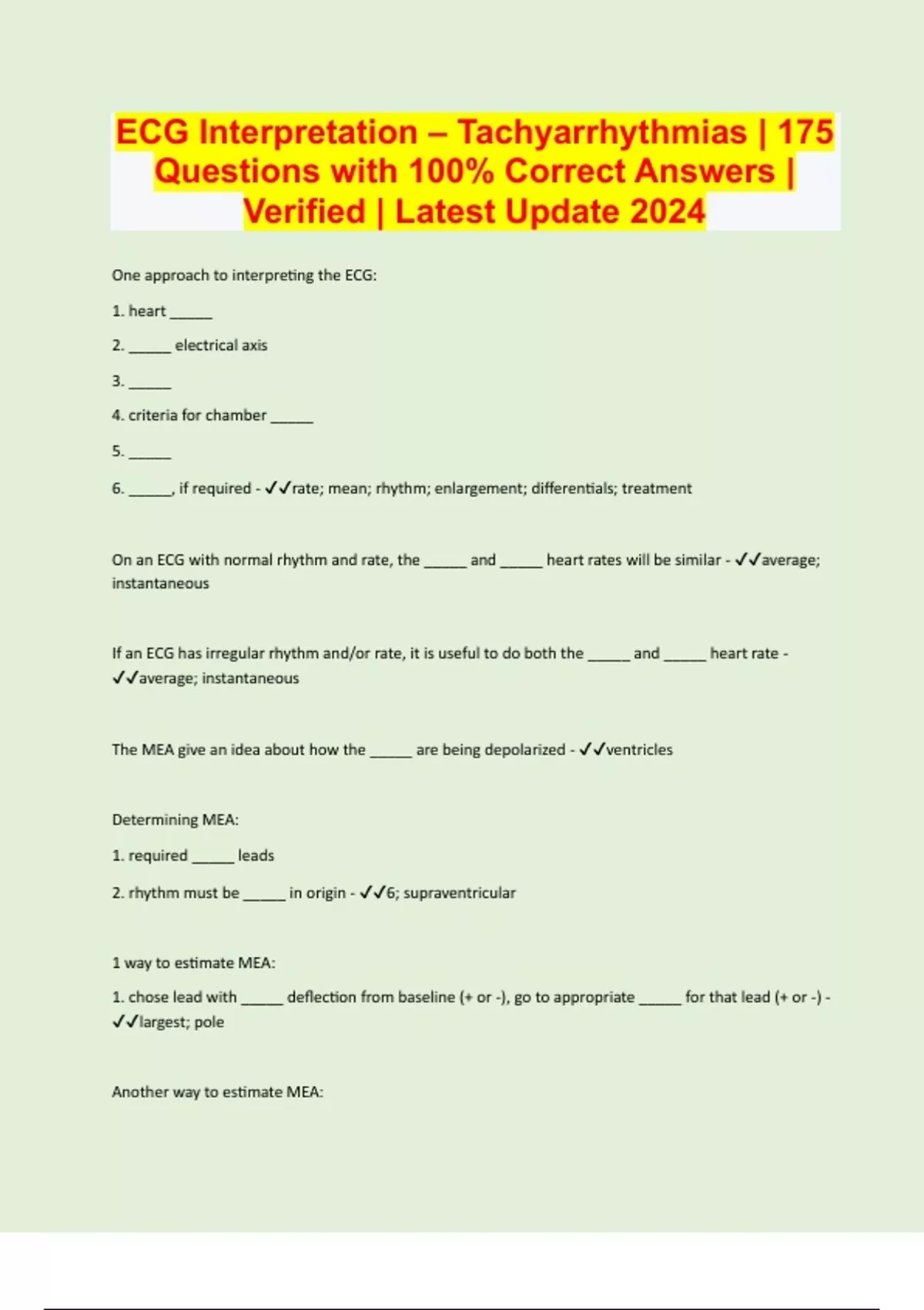 ECG Interpretation – Tachyarrhythmias | 175 Questions with 100% Correct ...