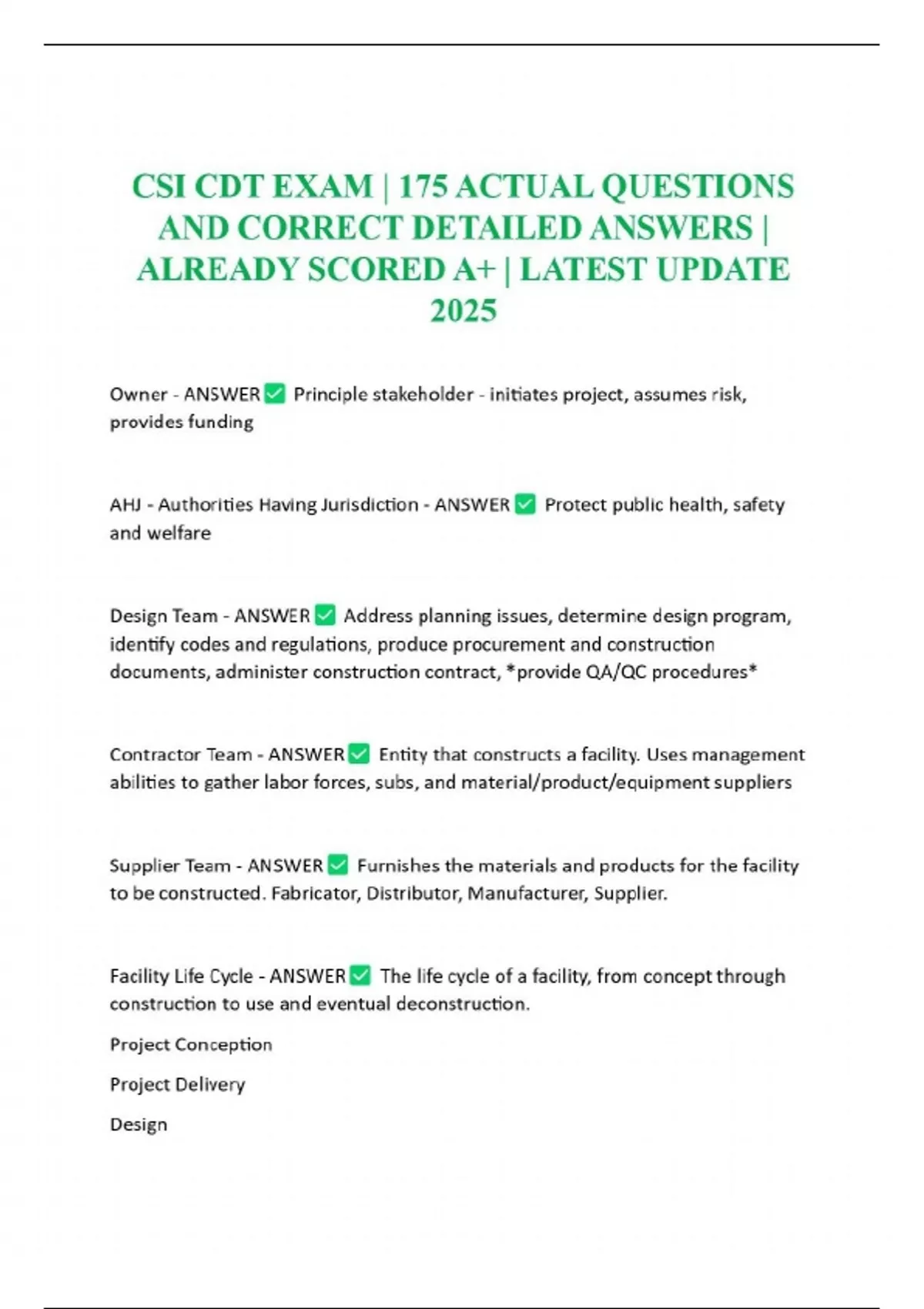 CSI CDT EXAM | 175 ACTUAL QUESTIONS AND CORRECT DETAILED ANSWERS ...