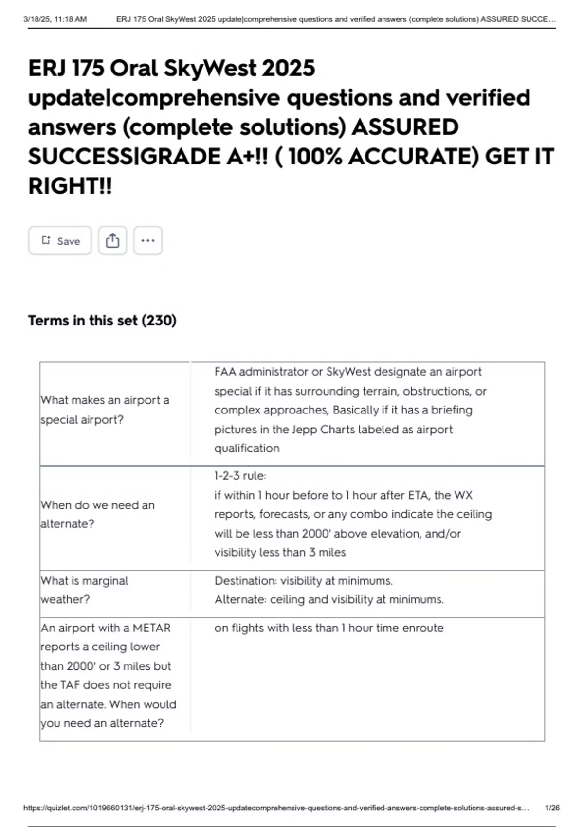 ERJ 175 Oral SkyWest 2025 update|comprehensive questions and verified ...
