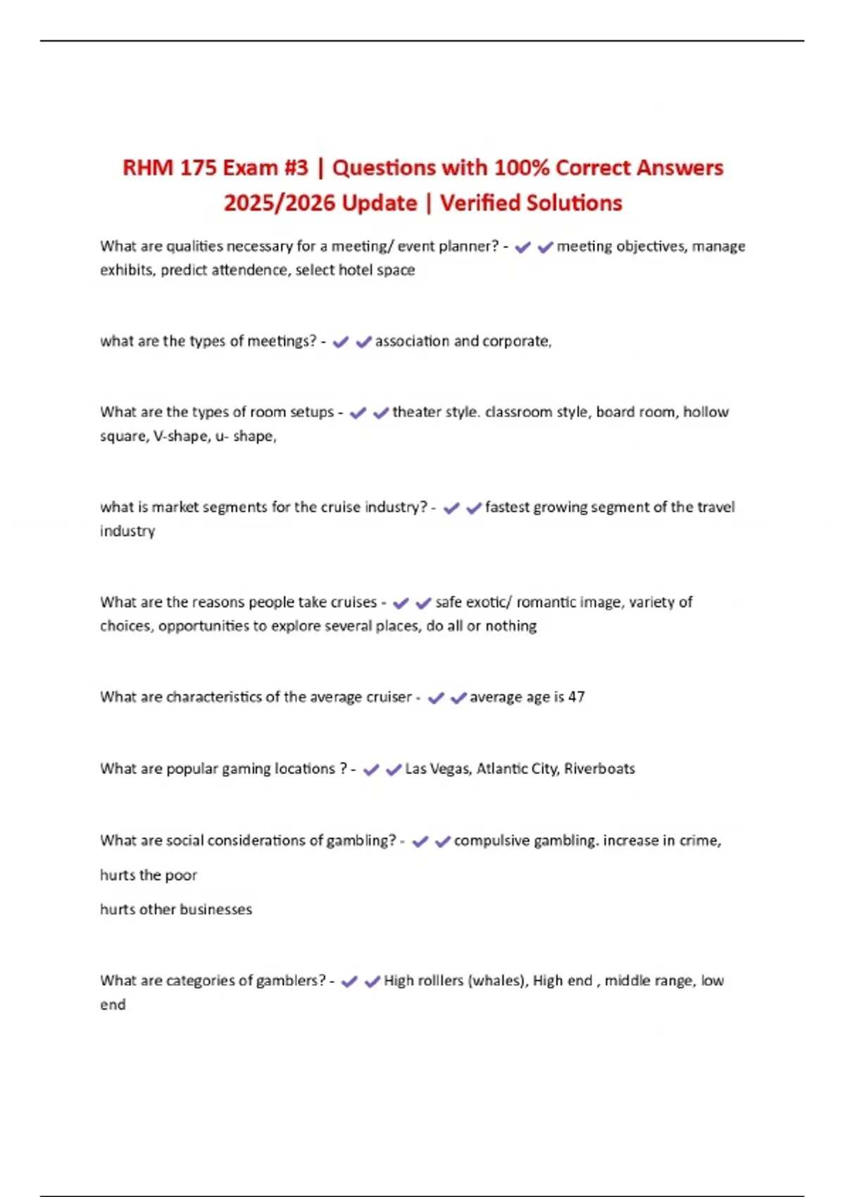 RHM 175 Exam #3 | Questions with 100% Correct Answers 2025/2026 Update ...