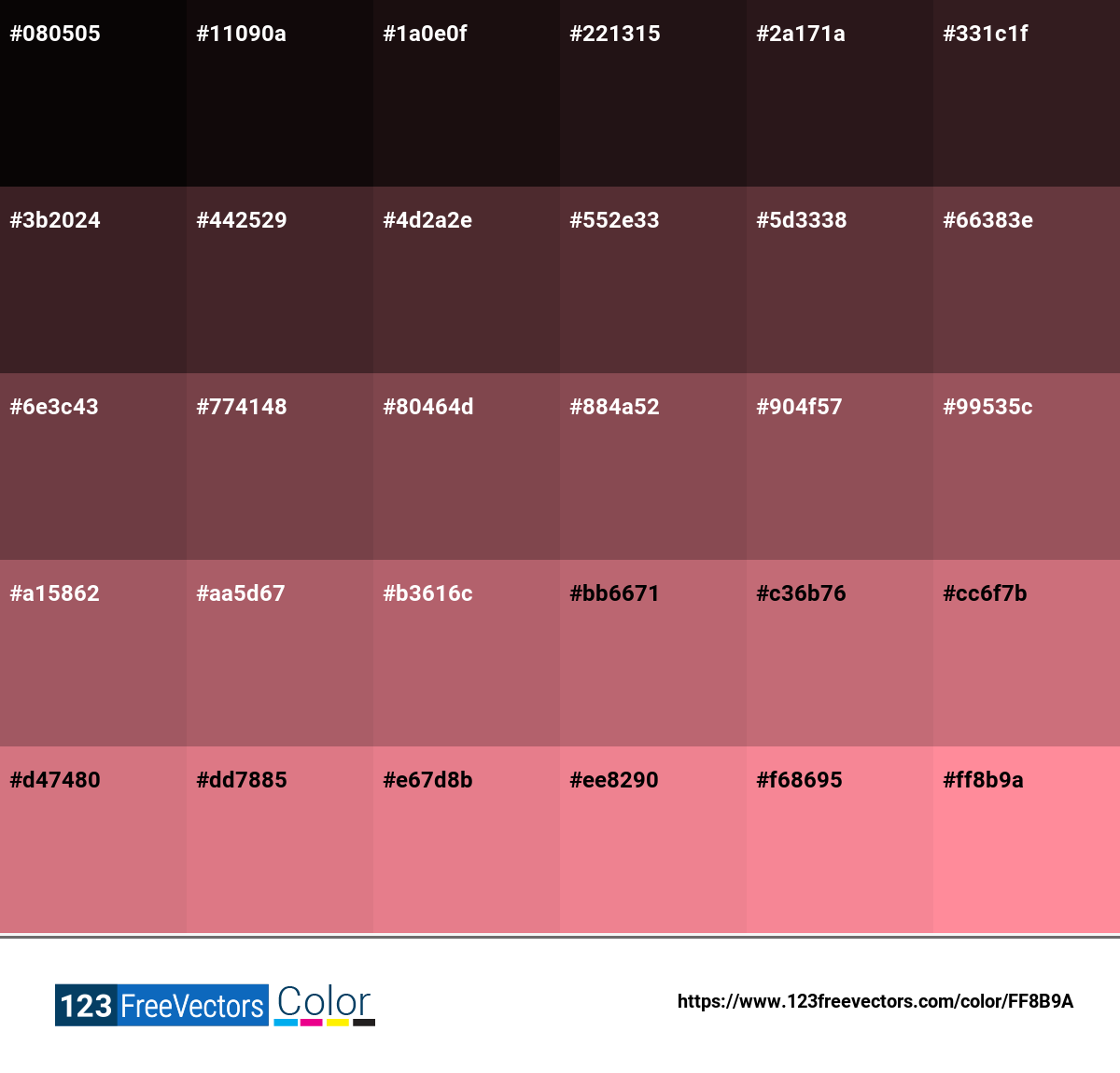 100 Shades Of Red Color Names Hex Rgb Cmyk Codes Shades Of/printable ...