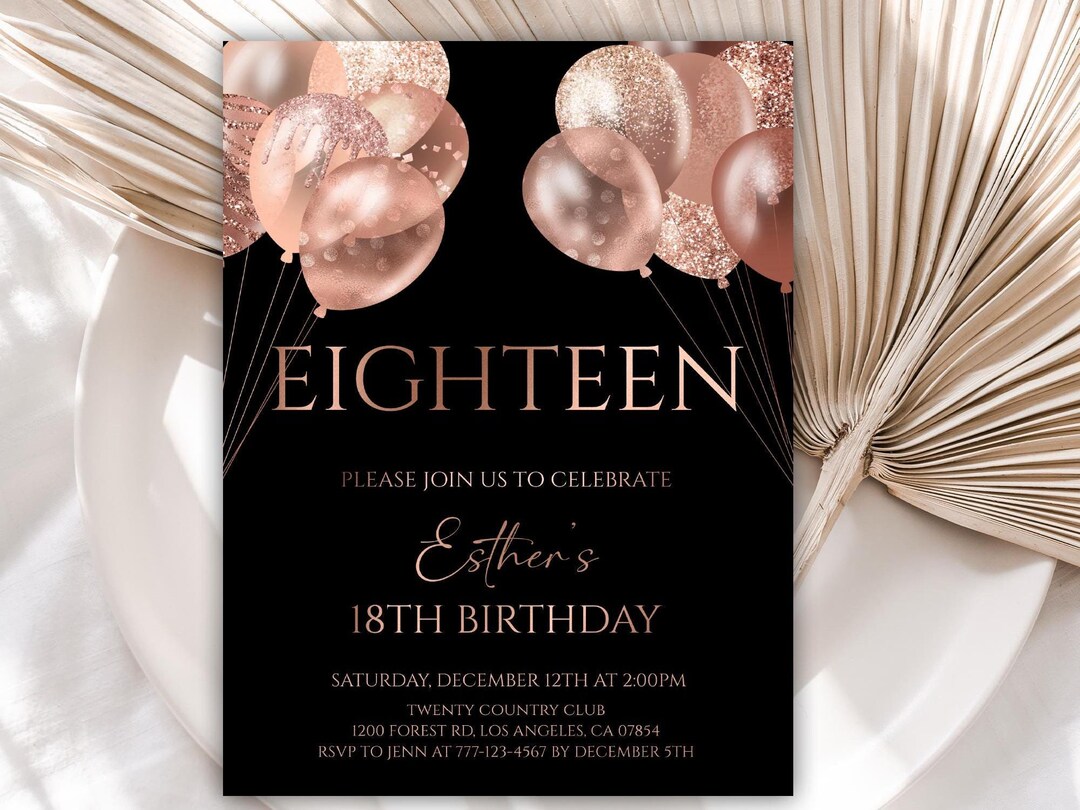 18th Birthday Invitation Editable 18th Invite Rose Gold Invitation ...